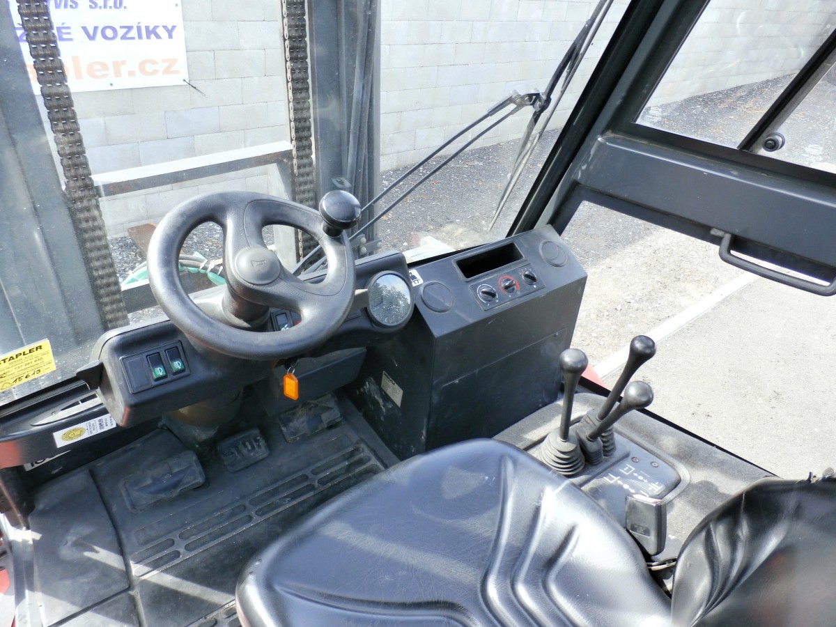 | Výbava: | hydraulický pozicionér vidlic s bočním posuvem, 3+4 ventil, vidlice 2400mm, kabina s topením, pracovní osvětlení, maják, platná TK |